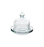 Ravissant petit beurrier rétro voir vintage avec sa forme toute en rondeur. Ce beurrier en verre est particulièrement pratique pour mettre en valeur votre beurre et le servir à table. La cloche en verre de ce beurrier permet de préserver le beurre des saletés à table et des odeurs dans le réfrigérateur.